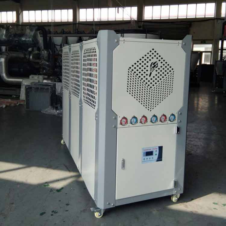 目前工廠使用比較多的便是注塑機,塑膠粒經加熱溶化后注入模具中,凝結后,開模頂出成型塑膠工件,在連續生產過程中有需用對模具進行冷卻,以縮短塑膠凝結時間,提高工件尺寸精度,成型質量、表面質量。而在早期,很多用戶選用冷卻水塔為其降溫,這種冷卻方式只適合在環境溫度較低的情況下達到降溫目的,一旦環境溫度升高,則無法保證產品精度。因此,就需要使用到制冷機組